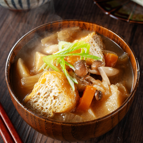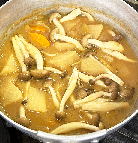 新潟の食材を詰め込んだ、ごちそう味噌スープです。