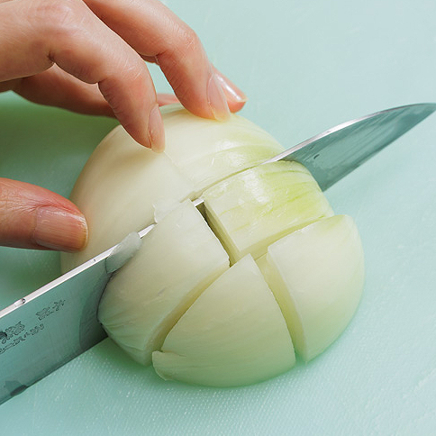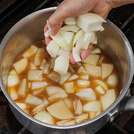 鍋にふくふく汁の素と玉ねぎを入れ、蓋をして弱火で20分ほど煮る。