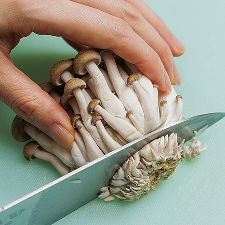 しめじは石突をとり、小房に分ける。えのきは石突をとり、3cm長さに切ってほぐす。なめこはザルにあけて水洗いする。