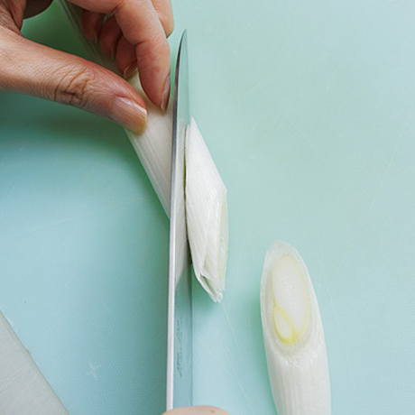 ほうれん草はゆでて5cm長さに切る。長ねぎは斜め切りにする。