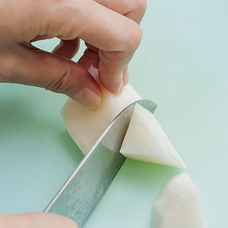 手順2 手順2玉ねぎはくし形に切る。人参・里芋・大根はひと口大の乱切りにする。しめじは石突をとり、小房に分ける。
