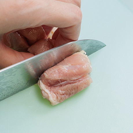 手順1 手順1鶏もも肉はひと口大に切り、塩・こしょうで下味をつける。周りに米粉をつける。