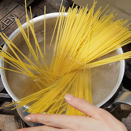 手順3 手順3鍋に湯を沸かし、たっぷりの塩(分量外、1リットルに対して大さじ1)を入れてスパゲッティを表示通りゆでる。ゆで上がり2分前にブロッコリーを加え、ゆで上げる。