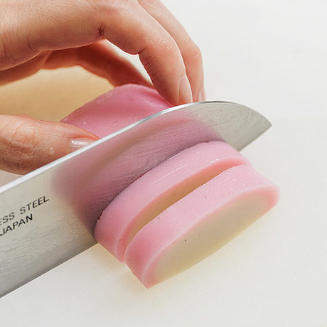 手順3-2 手順3-2かまぼこは1cm厚さに切る。