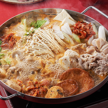 手順7 手順76に白菜・きのこ・鍋三昧セットの肉を入れて煮る。肉に火が通ったら豆乳を加え、1・豆腐・長ねぎ・キムチを入れて煮る。