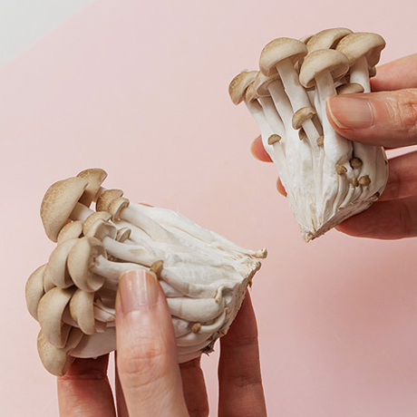 手順4 手順4しめじは石突をとり、小房に分ける。えのきは石突をとり、2等分に切る。