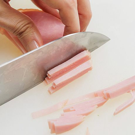 ハムはせん切りにする。