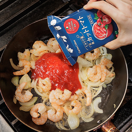 濃厚トマトソースにえびの旨みがとろける、贅沢なひと皿です。
