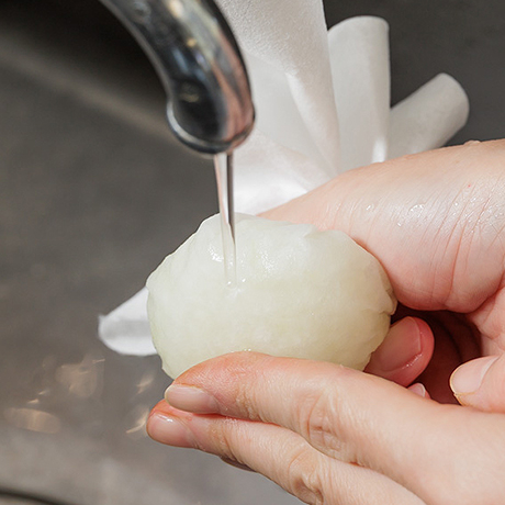 手順4玉ねぎはみじん切りにしてキッチンペーパーで包み、水洗いする。
