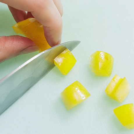 手順1-3玉ねぎはみじん切りにしてキッチンペーパーで包み、水洗いする。