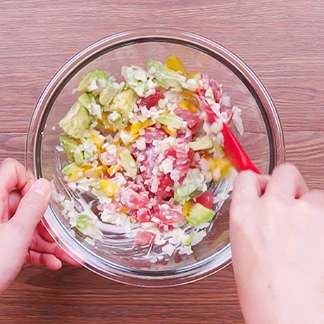 手順2ボウルにドレッシングの材料を入れて混ぜる。