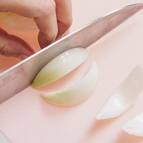 手順2玉ねぎはくし形に切る。かぶは6等分に切る。