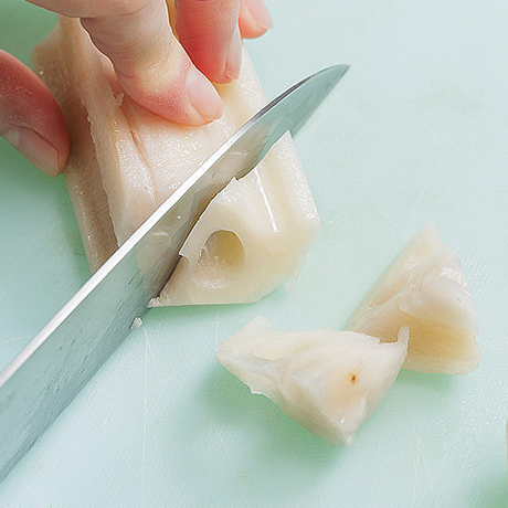 手順3人参は乱切りにする。れんこんは乱切りにして水にはなす。里芋は4等分にして塩もみして洗い、ぬめりをとる。鍋に水と人参・れんこん・里芋を入れてゆで、里芋に竹串が通ったらザルにあげる。