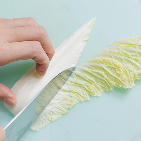 手順1白菜は葉と茎に分け、ひと口大に切る。