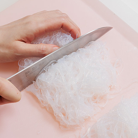 手順6春雨は熱湯につけ、柔らかくなったら食べやすい長さに切る。