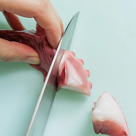 たこはひと口大に切る。かきはザルに入れて塩(分量外)をふり、水を流しながらふり洗いして水気をふきとる。塩・こしょうして、片栗粉をまぶす。えびは尾をとる。