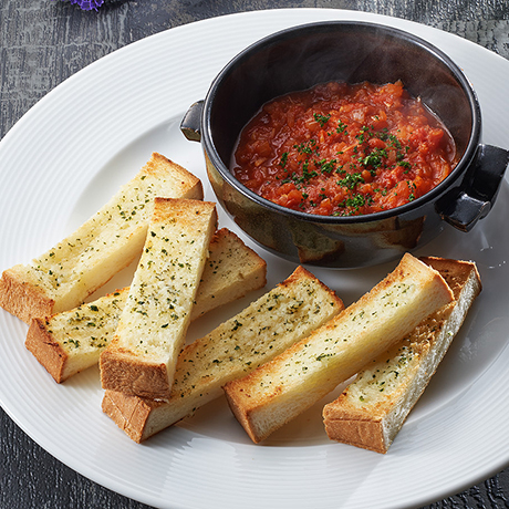 にんにく香る焼きたてトーストに濃厚トマトソース。