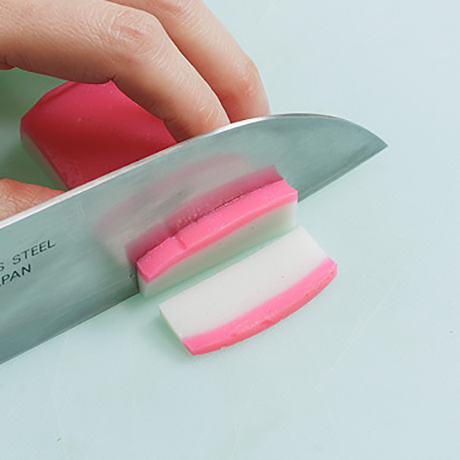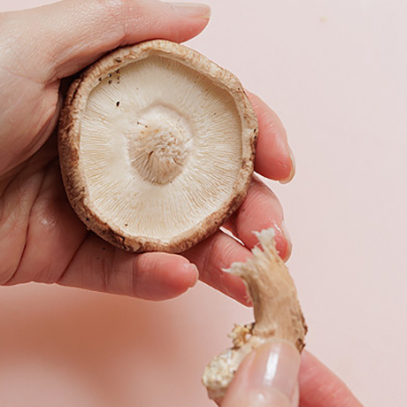 手順1-2椎茸は軸をとり、そぎ切りにする。