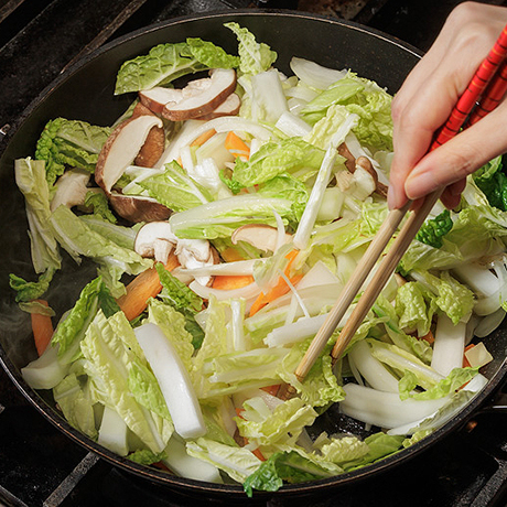 手順43に白菜・玉ねぎ・人参・椎茸を入れて炒める。
