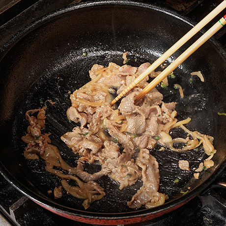 フライパンにサラダ油を温め、THE プルコギビーフを火が通るまで焼く。