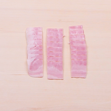 手順2ベーコンは3cm長さに切る。