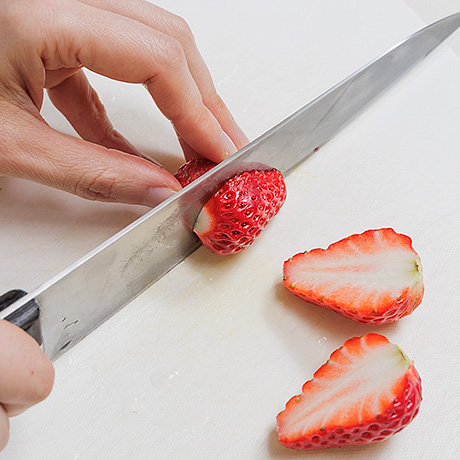 手順2いちごは半分に切る。ミックスナッツは粗く刻む。