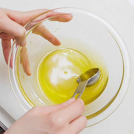 手順4ボウルにドレッシングの材料を入れ、混ぜ合わせる。