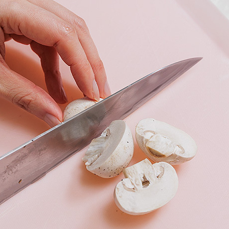 マッシュルームは半分に切る。