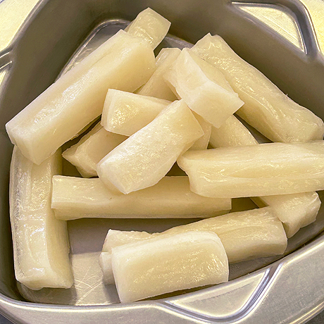 手順3切りもちは3等分に切り、焼く。
