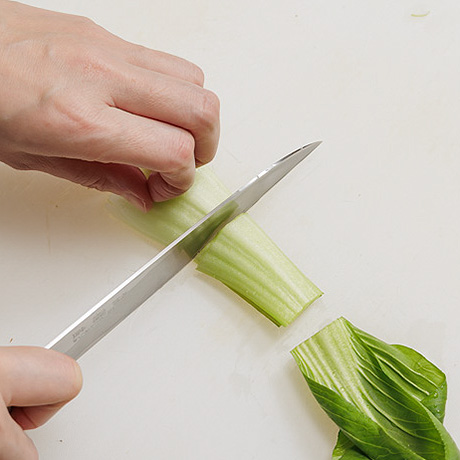 手順1チンゲン菜は3cm長さに切る。