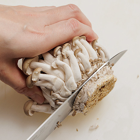 手順2しめじは石突をとり、小房に分ける。