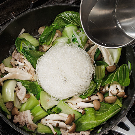 手順54に水と春雨を加え、沸騰させる。